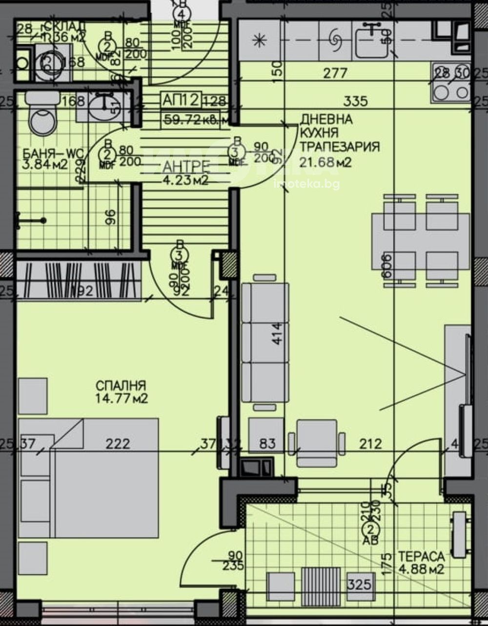 Двустайни – оптимално разпределение, идеални за младо семейство или инвестиция;
