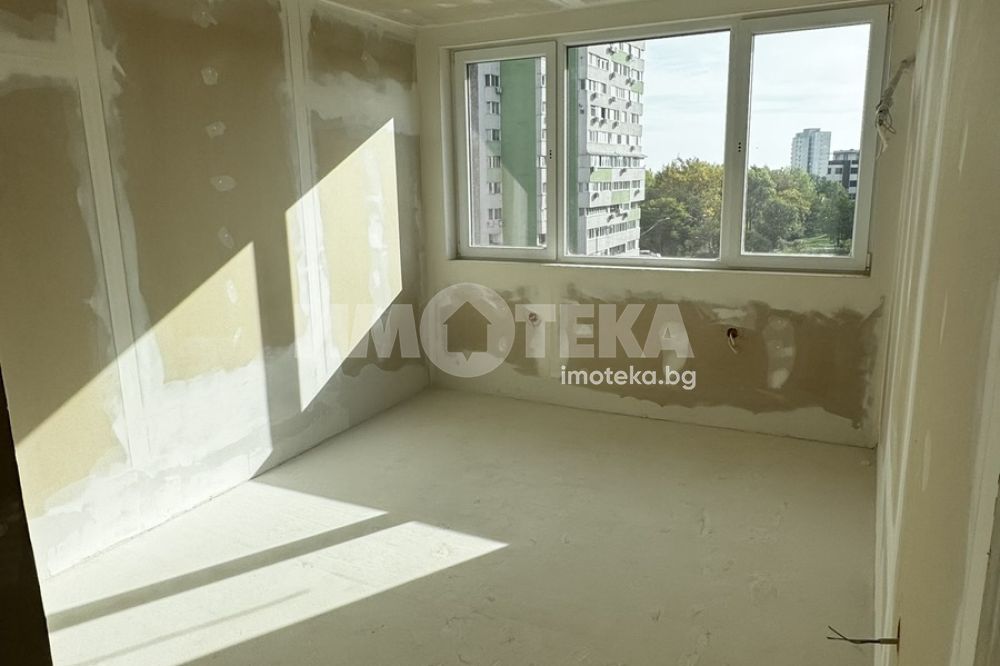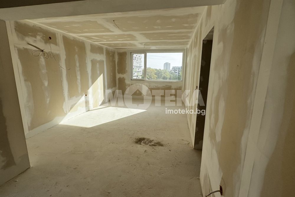 Тристаен апартамент на шести жилищен етаж с чиста площ 79,14 кв.м. разпределени в дневна с кухненски бокс, две спални, баня с WC, тоалетна, мокро помещение, антре и тераса.