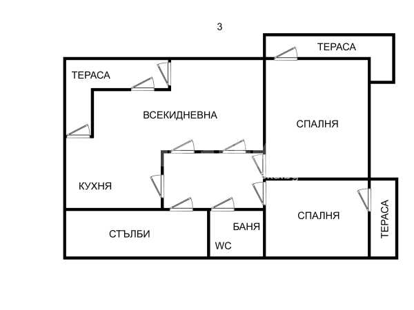 Трети етаж - тавански - три помещения.