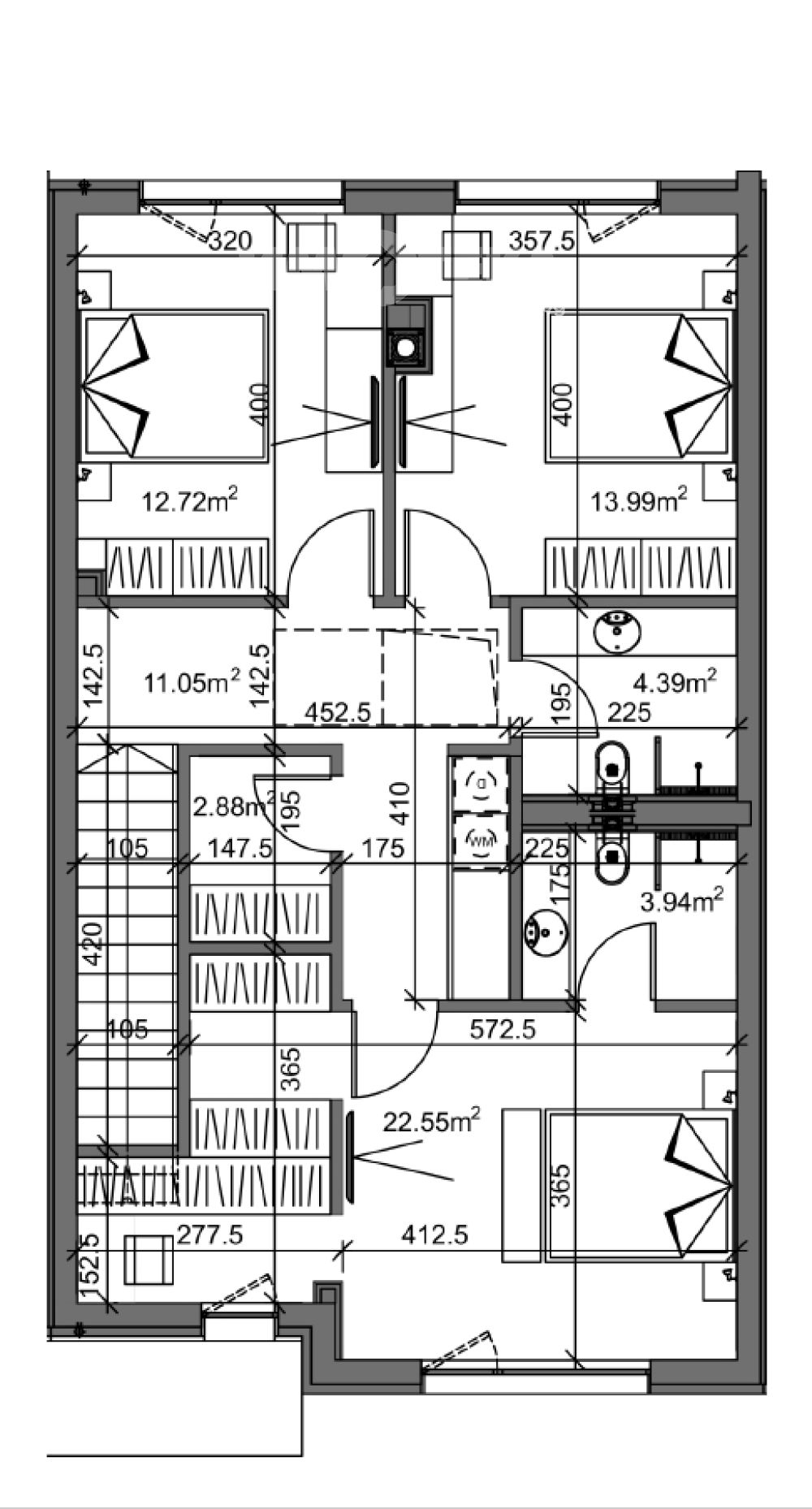 Предлагаме къща на два етажа, част от комплекс с шест жилищни групи. Разпределението й е функционално, осигуряващо комфорт и удобство за съвременния начин на живот.