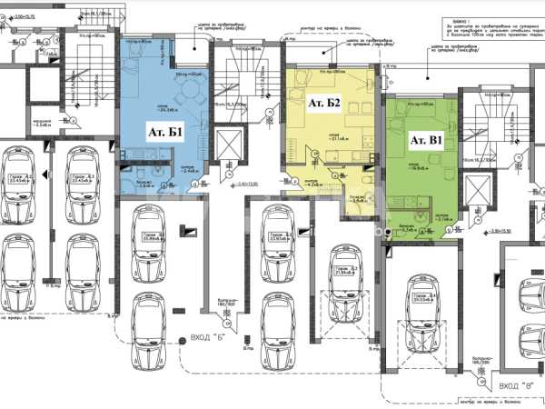 "Лазурен Бряг" представлява четириетажна масивна жилищна сграда със сутерен, полуподземен етаж и три входа.