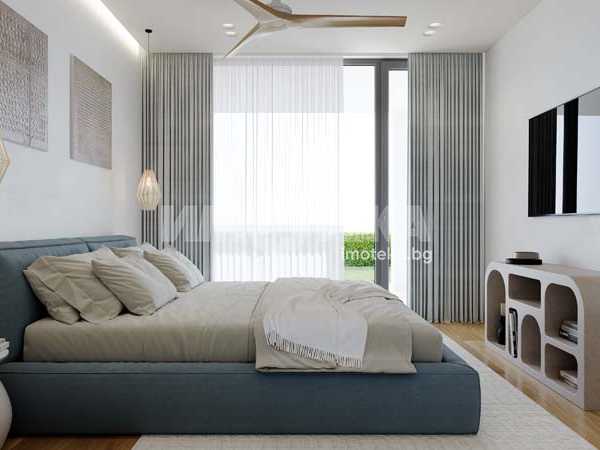 Имотът още разполага с четири спални с възможност за пета, четири санитарни помещения, дрешник и складово помещение. В двора може да бъде изграден (по желание на клиента) басейн.