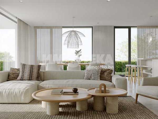 етаж 1 - просторна и светла дневна с трапезария и кухненски кът, кът за отдих, от който се излиза на слънчева веранда, склад и санитарно помещение;