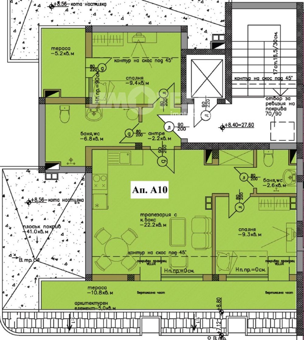 Имотът се издават на степен "ТАПА" - на шпакловка и замазка.