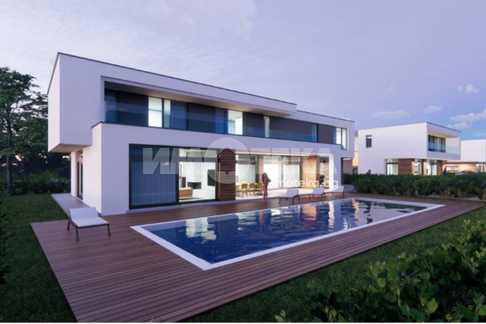 „Aurelia Homes“- Самостоятелни НИСКОЕНЕРГИЙНА еднофамилна къща в затворен бутиков комплекс. с РЗП 371 кв.м. върху площ от 729 кв.м. Разполага с четири спални: спалня 1-13.03 кв.м., спалня 2+ гардеробна 22,20 кв.м. + 5,50 кв.м., спалня 3 + гардеробна 11,30 кв.м. + 8,34 кв.м. спалня 4-20, 42 кв.м.. Самостоятелна тоалетна, Баня 1- 4,24 кв.м., баня 3-5,30 кв.м., баня 4- 11,30 кв.м., Просторна дневна от 61, 40 кв.м., техническо помещение-8,20 кв.м., перално помещение- 10,27 кв.м., Паркоместа - 32,52 кв.м.