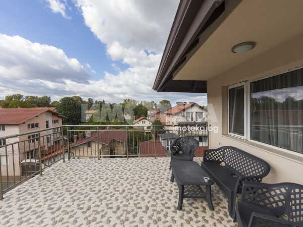 Продава се напълно обзаведен самостоятелен етаж от къща в село Герман със ЗП 126 кв.м. на етаж 4 от 4 със следното разпределение: коридор отделня кухня с трапезария, дневна, две спални баня с тоалетна, две тераси и дворно място. Отоплениетое на имота е на ток с котле и подово отоплиние. Към апартамента има таванско помещение, което е включено в застроената площ. Паркирането е свободно около къщата.