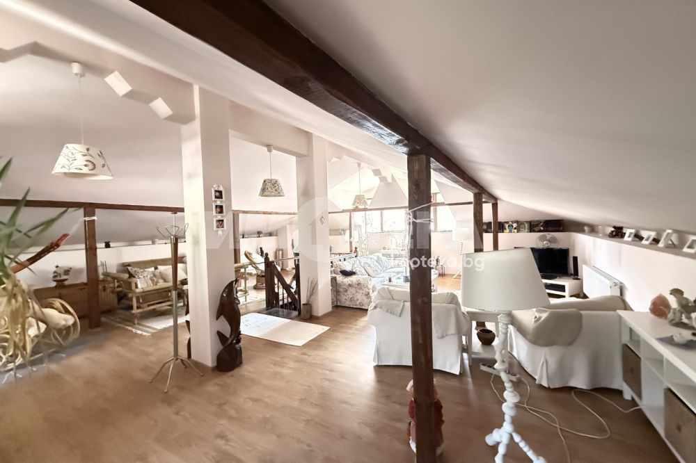 2 етаж: просторно еднопространствено помещение , зонирано като спален кът , кът за отдих и релакс, кът за игра.