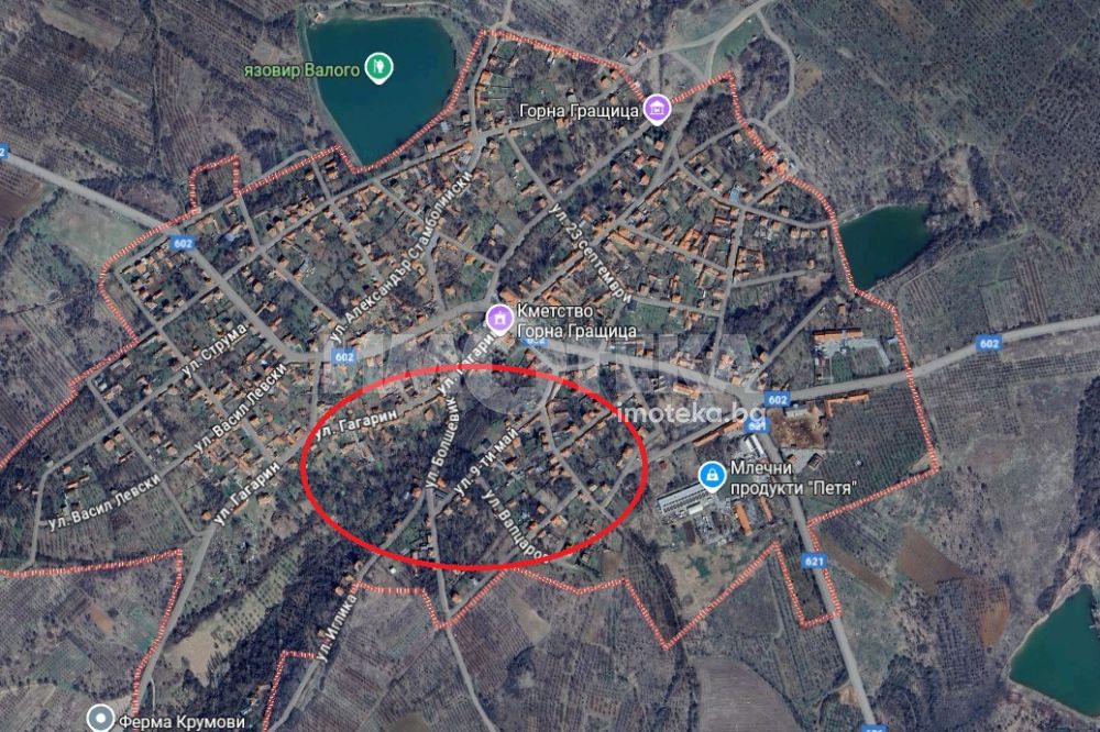 КЪЩА на две нива със застроена площ - 60 кв.м, масивна лятна кухня със ЗП = 20 кв.м /на 2 нива/ и масивна второстепенна постройка със ЗП = 24 кв.м /на 2 нива/ разположена в равен двор - УПИ с площ 860кв.м. в китното село Горна Гращица обл. Кюстендил, на асфалтов път с лесен и целогодишен достъп.