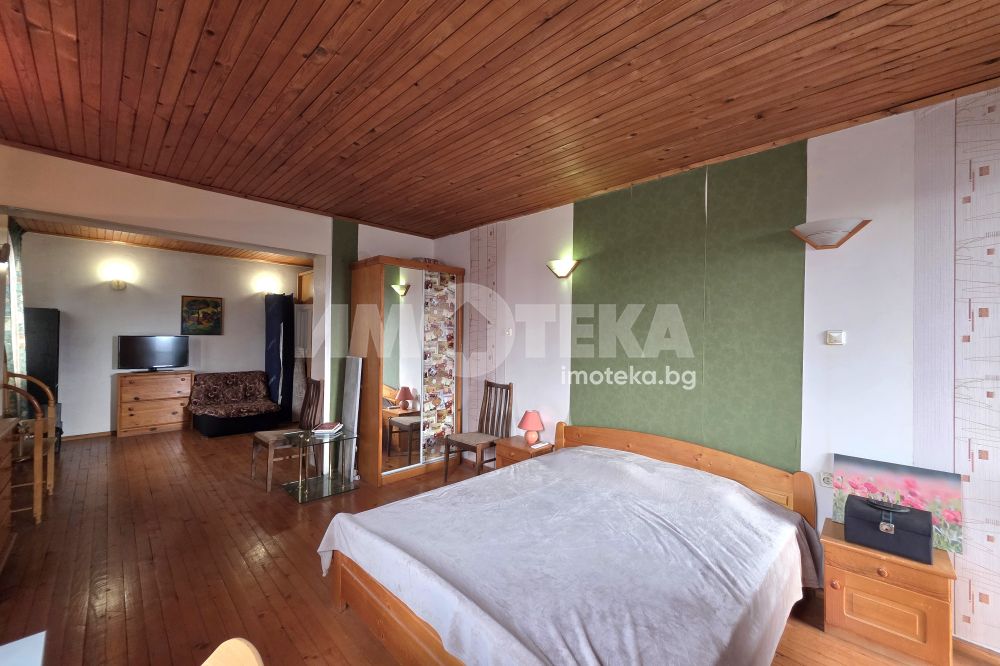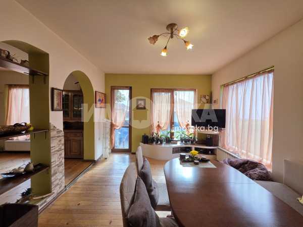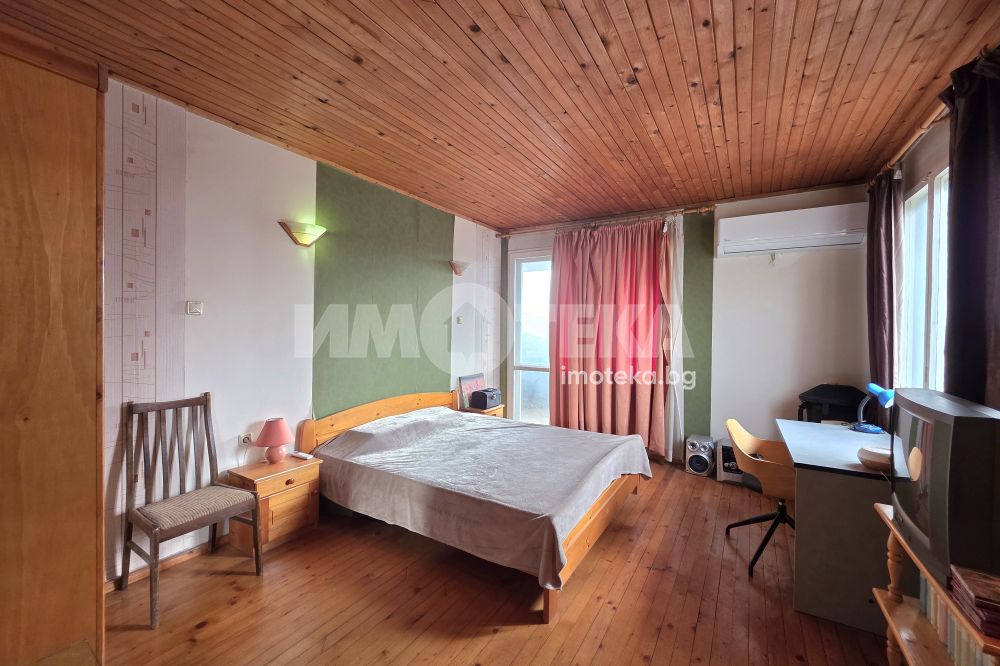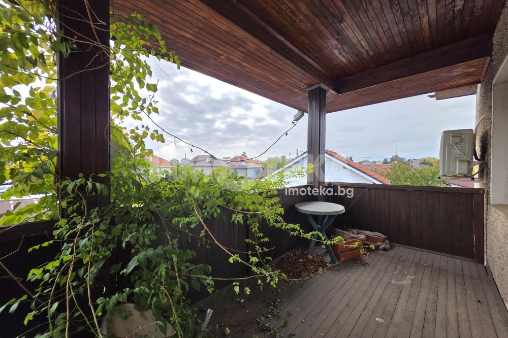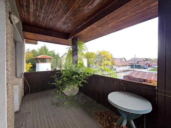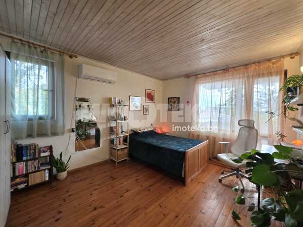 Масивна двуетажна къща в спокойното и красиво село Горни Богров. Къщата е със застроена площ 87 кв.м и 122кв.м. с включени тераси и външно стълбище. Стаите са с източно и южно изложение и има гледки към Витоша и Стара планина. Състои се от: първи етаж- входно антре, незавършена голяма баня, коридор, хол с кухненски бокс, спалня и санитарен възел. От дневната се излиза на хубава тераса към двора. Вътрешно стълбище води към втори етаж състоящ се от две спални, като в едната има и възможност за работен кабинет или трета спалня, коридор и санитарен възел. Вторият етаж може да се обособи като самостоятелно жилище.