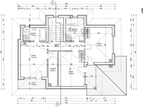 Фасадни материали – каменна и дървена облицовка, “дишаща” минерална мазилка.