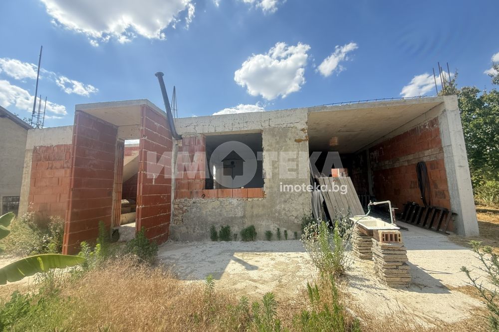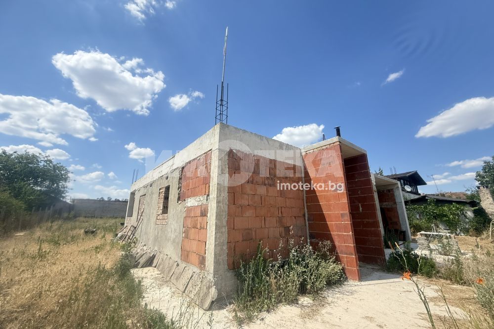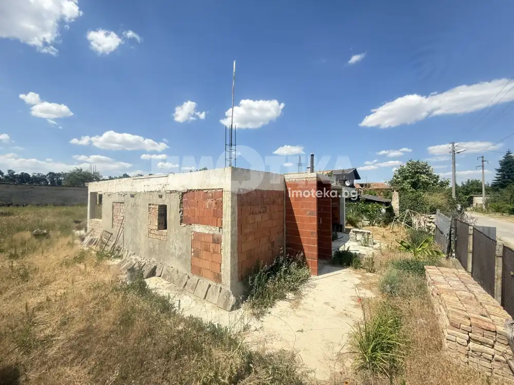 Предлагаме Ви къща в строеж, в непосредствена близост до града в едно от най-предпочитаните села до Варна. Къщата е на един етаж, състои се от голяма дневна около 50 кв. м, санитарно помещение, спалня около 16 кв. м и гараж около 20 кв. м. Има излята плоча за втори етаж и вътрешни стълби, където могат да се обособят още 3 спални. Има опция за завършване.
