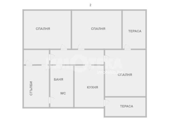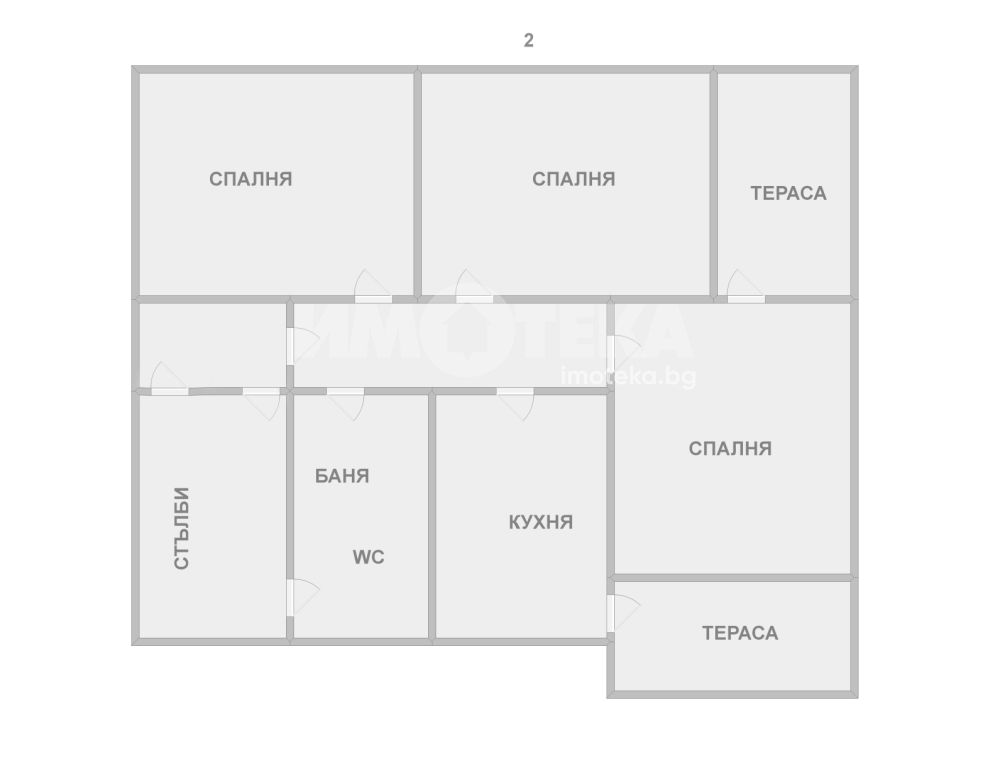 Второ ниво - три спални, две от които с излаз на тераса, баня с тоалетна.