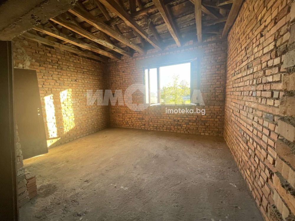 Първият етаж разполага с три големи стаи и широк коридор, а вторият – със същото разпределение. Двата етажа са свързани чрез удобно вътрешно стълбище, което прави къщата подходяща както за едно, така и за две домакинства. Вътре няма изграден санитарен възел, но има възможност за обособяване според нуждите и вкуса на новия собственик.