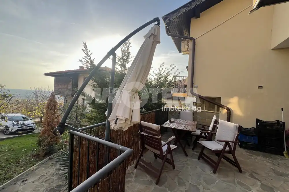 Двуетажна къща в с. Кошарица. Затворен комплекс БЕЗ ТКАСА ПОДДРЪЖКА! Площ РЗП 160 кв. м. + подпокривно пространство 30 кв. м., двор 250 кв.м. и парко място. Чист въздух, тишина, и морска гледка..