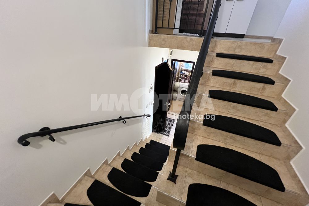 Втори етаж: две просторни спални, гардеробно помещение, като всяка спалня разполага със собствена баня с вана и тоалетна.