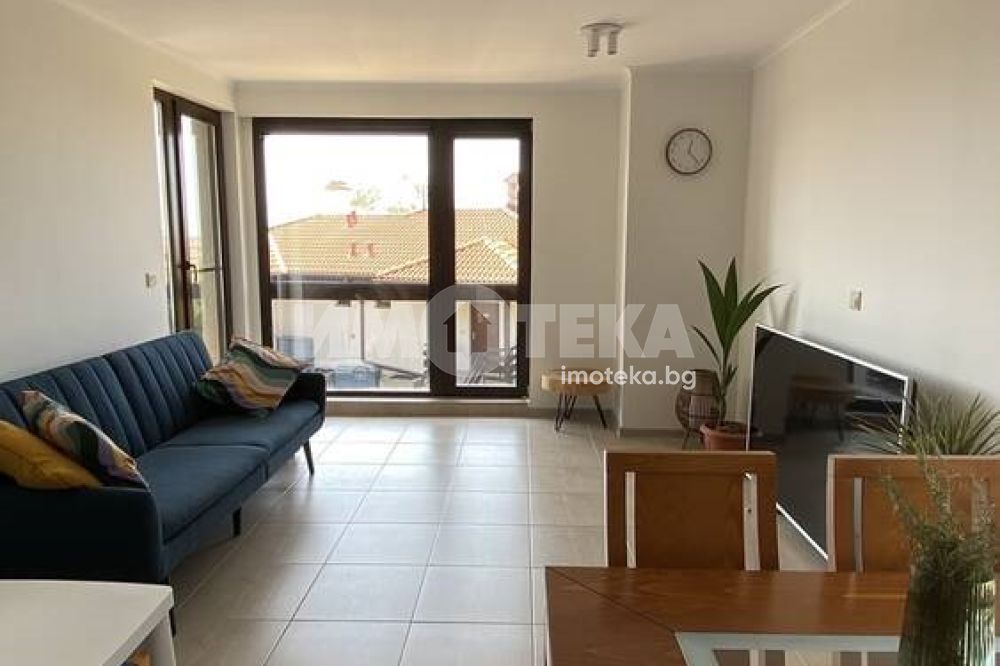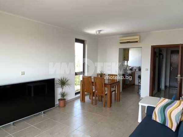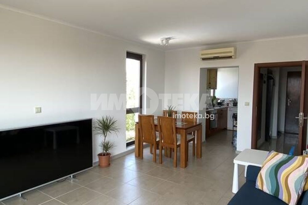 Площ на имота 87 кв. м., етаж 2 с нови мебели ИКЕА. Изгожение изток-югозапад. Състои се от коридор дневна , отделна кухня, две спални, гардеробна, баня с тоалетна, две тераси. Панорамни прозорци от пода до тавана, алуминиеви стъклопакети, затъмняващи ролетни щори. Безплатен паркинг. 24-часова охрана. Комплексът е с ландшафтен дизайн, 4 басейна, детска площадка.