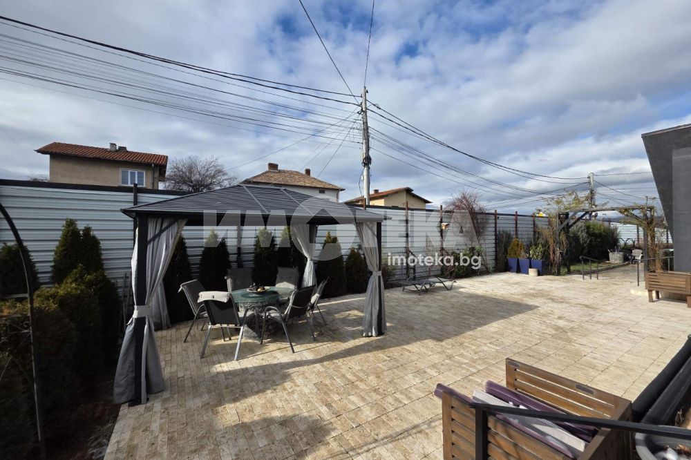 Страхотна еднофамилна къща в най-хубавата част на гр. Костинброд. Къщата е на един етаж със застроена площ от 330кв.м. , двор с площ от 894кв.м. и опцията за надстрояване на цялата плоча със същата квадратура. Разпределение: входно антре, просторна всекидневна с отделна мека мебел и голяма кухня, четири непреходни спални, три бани с тоалетни, отделно мокро помещение, опция за отделеня на отделен апартамент за всякакви нужди, голям двоен гараж. Имотът е в перфектно състояние , напълно обзаведен и обородуван, подходящ за живеене и от няколко семейства. Красиво аранжиран двор със зеленина и перфектна организация за летните месеци. Голям двоеж гараж на разположение за бъдещите собствениците.