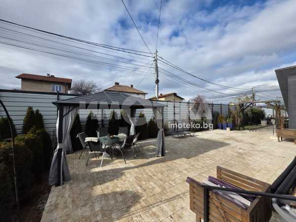Нова масивна тухлена къща с модерна визия и приятен двор.
