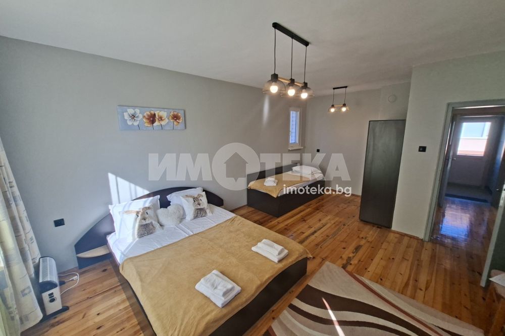 Просторна къща под наем в град Костинброд - идеална за семейство или корпоративен наем за дългосрочен период. На първия етаж има 2 спални, всекидневна с кухня и баня с тоалетна, а на втория етаж има 3 спални и баня с тоалетна,.разполага и с таванско помещение. Къщата е уютна и напълно оборудвана, с голям двор в спокойна част на Костинброд.