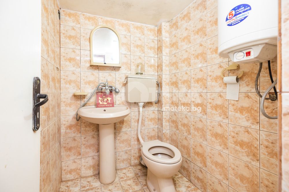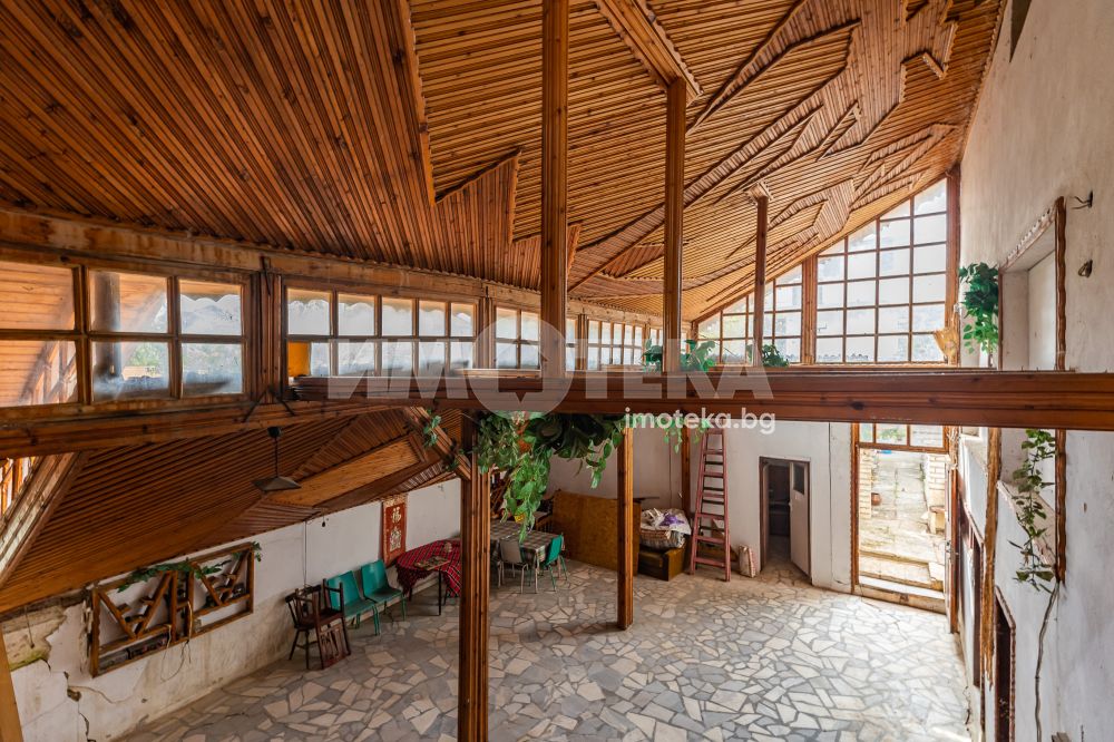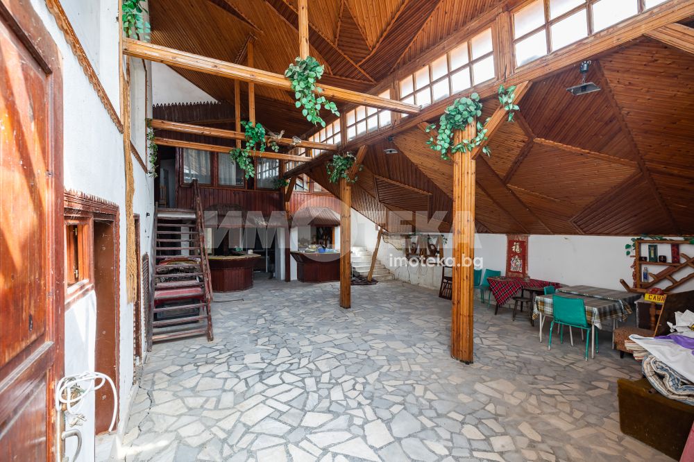 Монолитна жилищна сграда на три етажа със застроена площ 114 кв.м. Имотът е използван като къща за гости до 2022 г. Разполага с тринадесет стаи и самостоятелна постройка в двора със статут на сграда за обществено ползване със застроена площ 196 кв.м, работила като ресторант с всички придружаващи го по изискване помещения. Имотът е за ремонт, но е правен основен ремонт на покрива през 2023 г.
