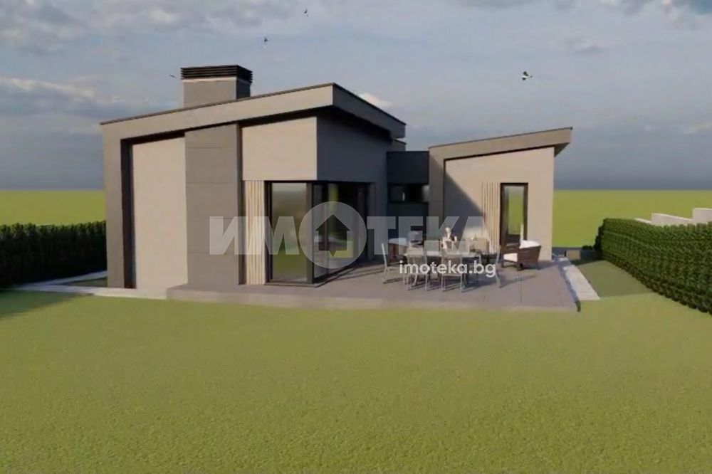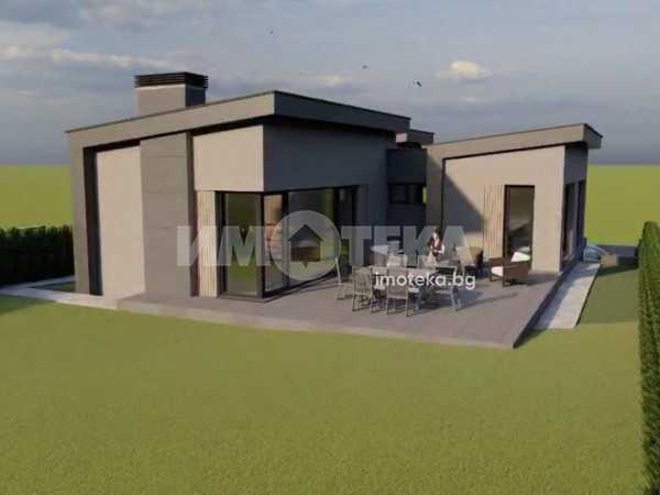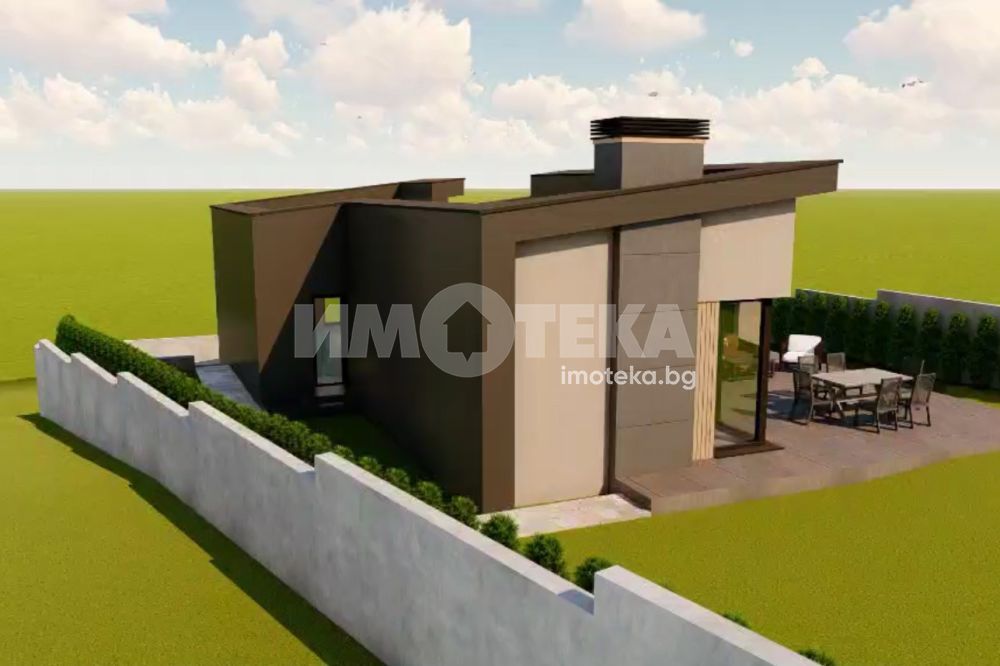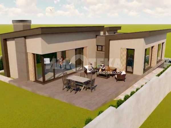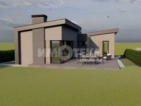 На етап разрешение за строеж. Цената е за за завършване по БДС. Има възможност и завършване до ключ и поставяне на соларни панели, като допълнително се заплаща след уточняване на материалите. Бетонна ограда до 50 см зид, нагоре метални колове с мрежа + зелена мрежа зебло. Интериорни врати, поставяне на плочки, ламинат, шпакловка и боя и необорудвани бани. Входна врата среден клас.