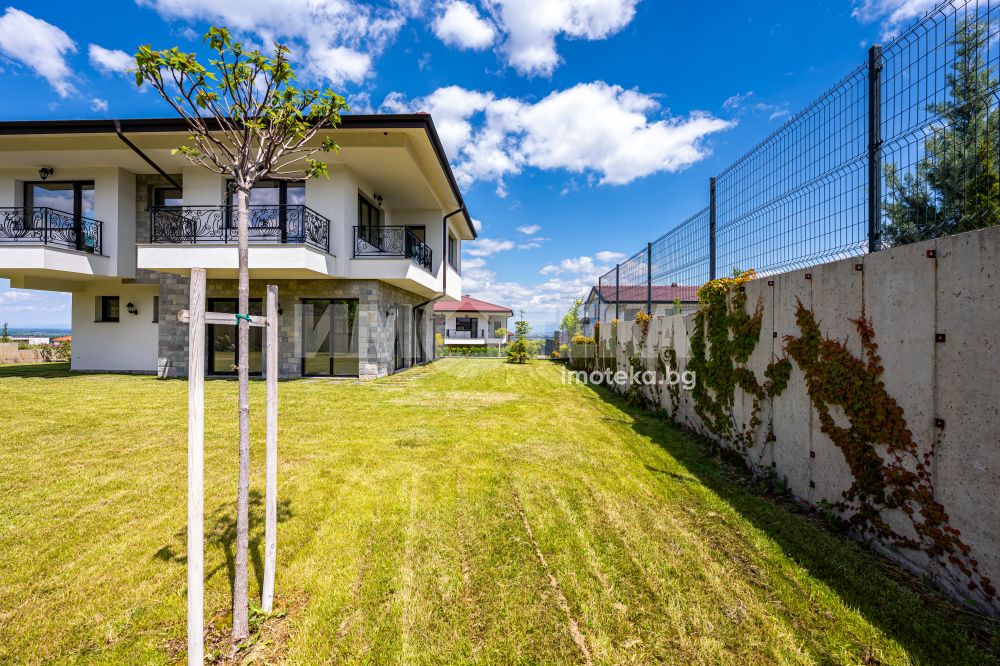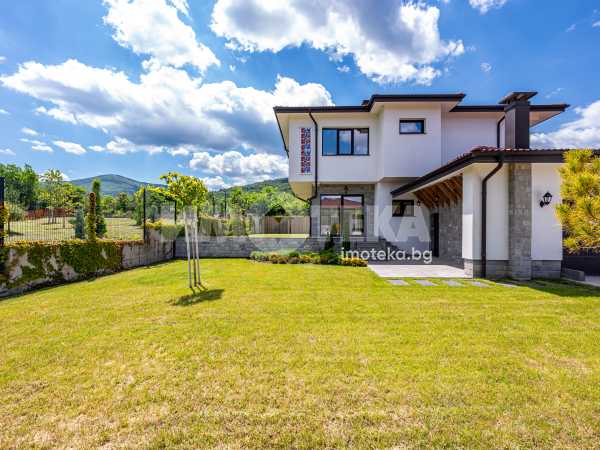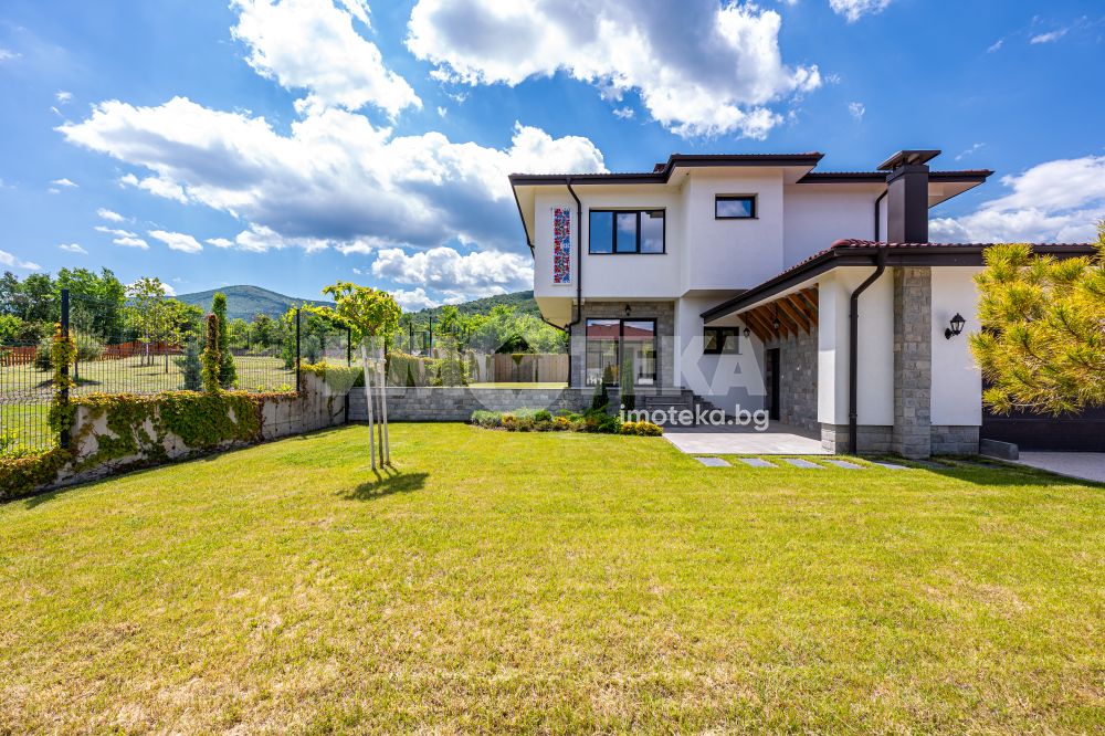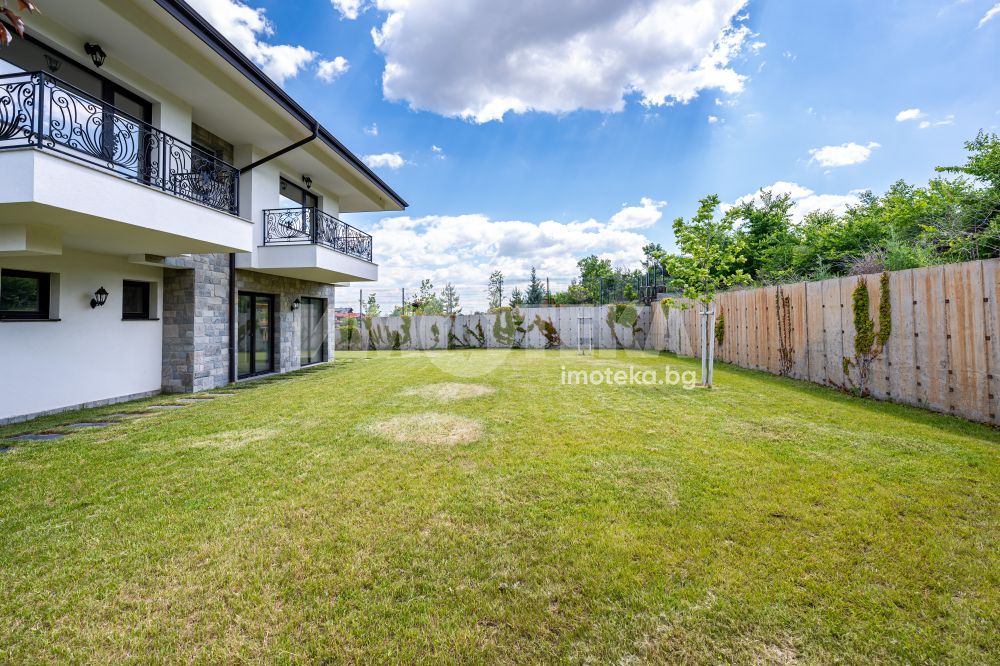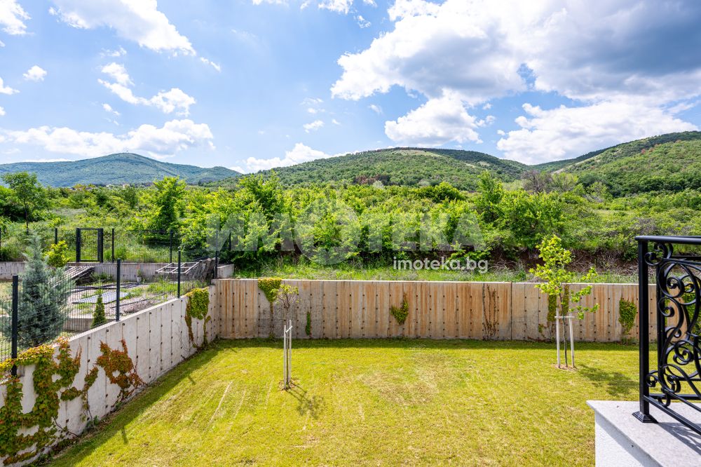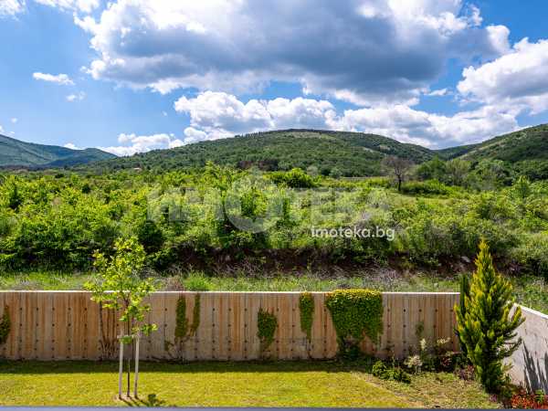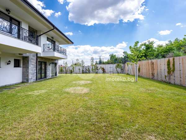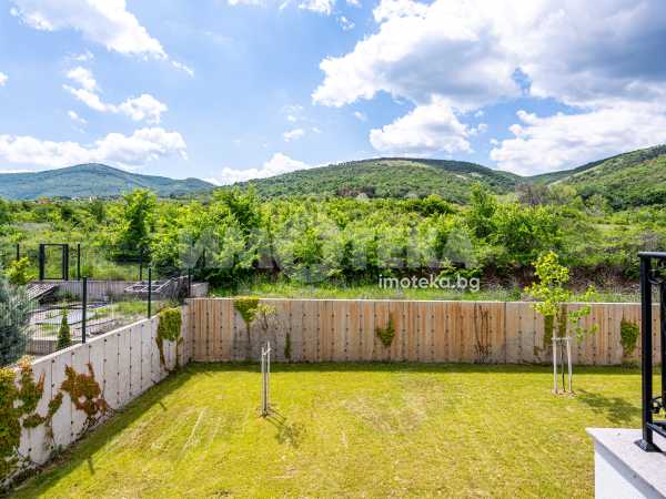 Обособена е и зона за отдих и свободно време - веранда в задната част на къщата и място за барбекю.