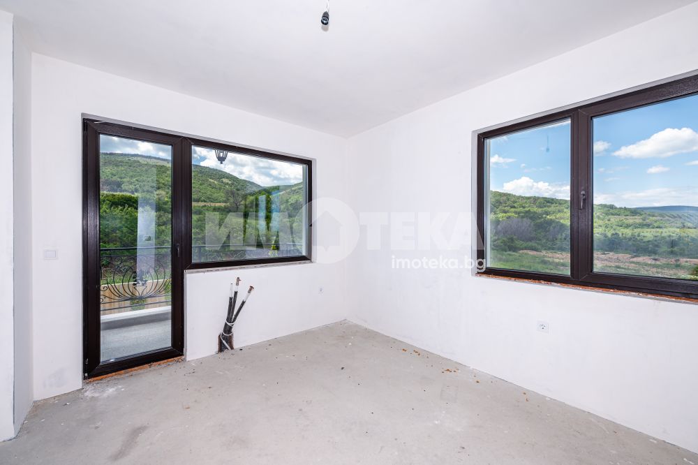 Френските прозорци на целия първи етаж осигуряват достатъчно светлина и панорамна гледка.