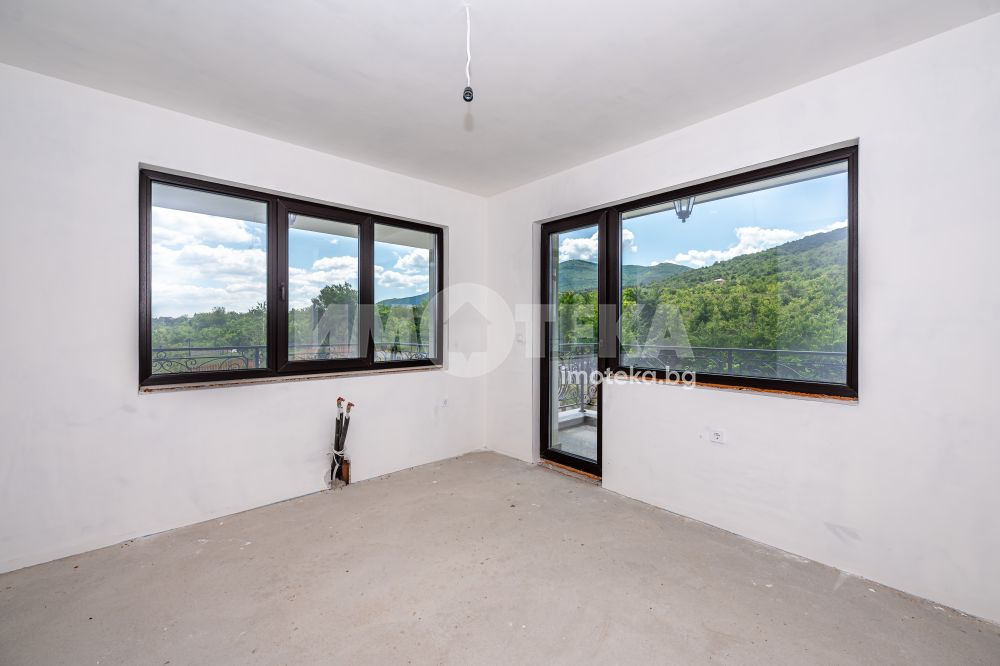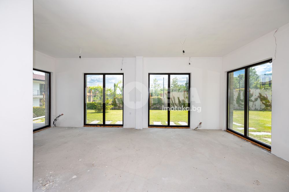 Френските прозорци на целия първи етаж осигуряват достатъчно светлина и панорамна гледка.