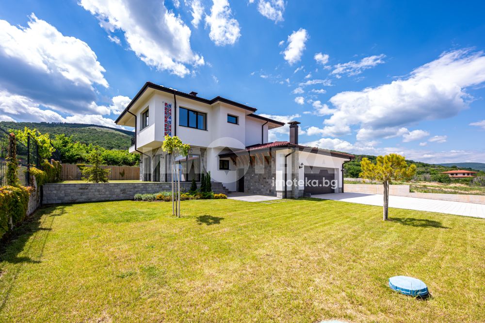 Обособена е и зона за отдих и свободно време - веранда в задната част на къщата и място за барбекю.