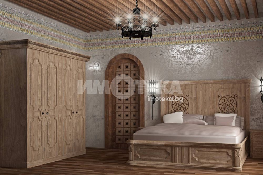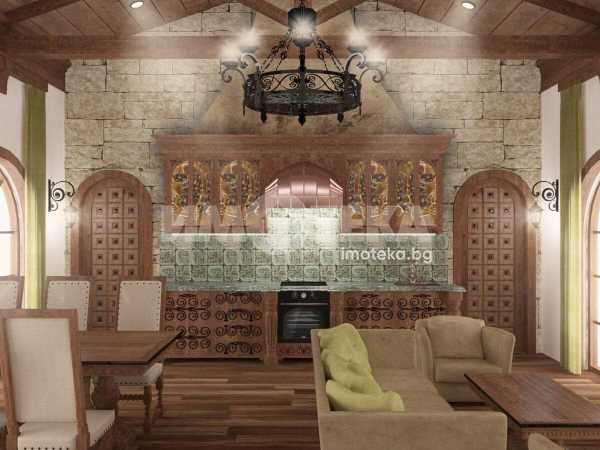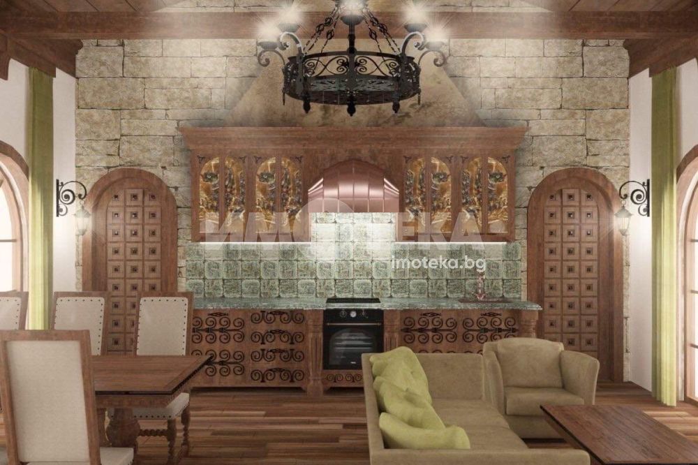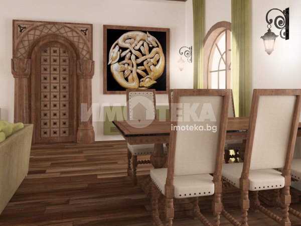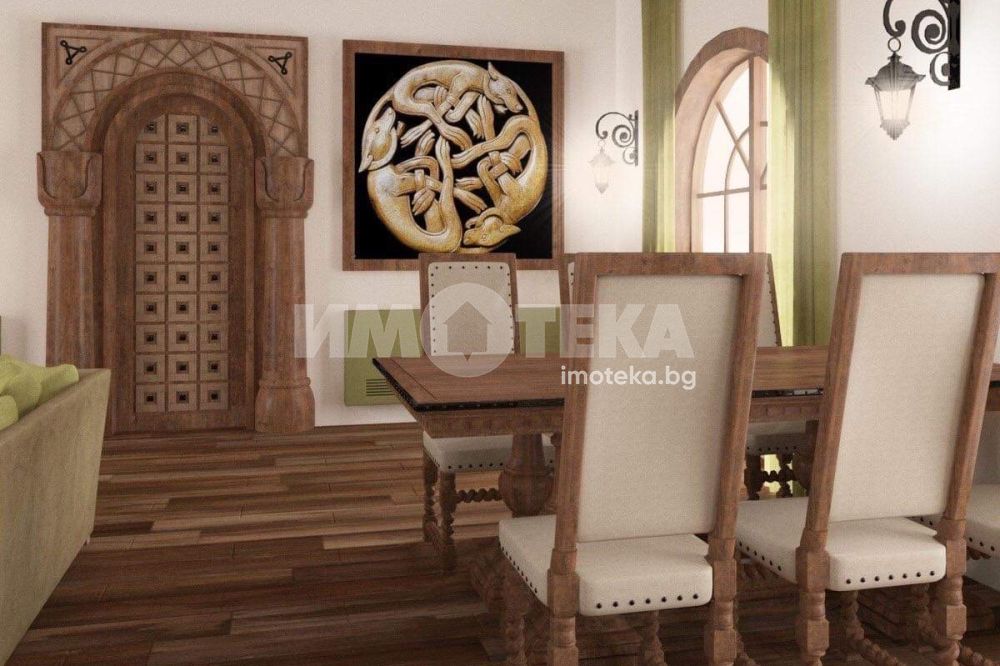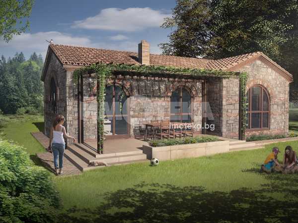 Самостоятелна къща в средновековна стилистика в село Неофит Рилски. Къщата разполага с просторна дневна, две спални и две самостоятелни бани. От дневната се излиза на дървена веранда с изглед към вътрешния двор. В цената е включено обзавеждане, което се вижда от визуализациите.