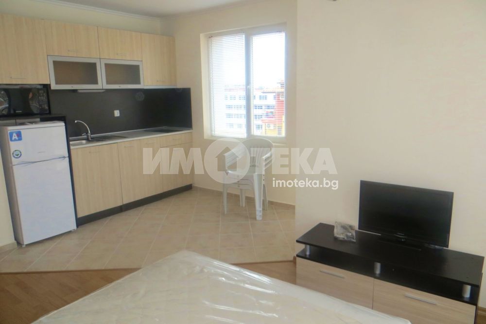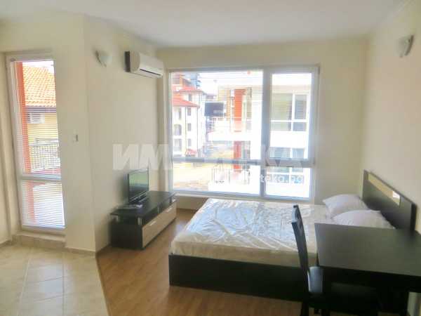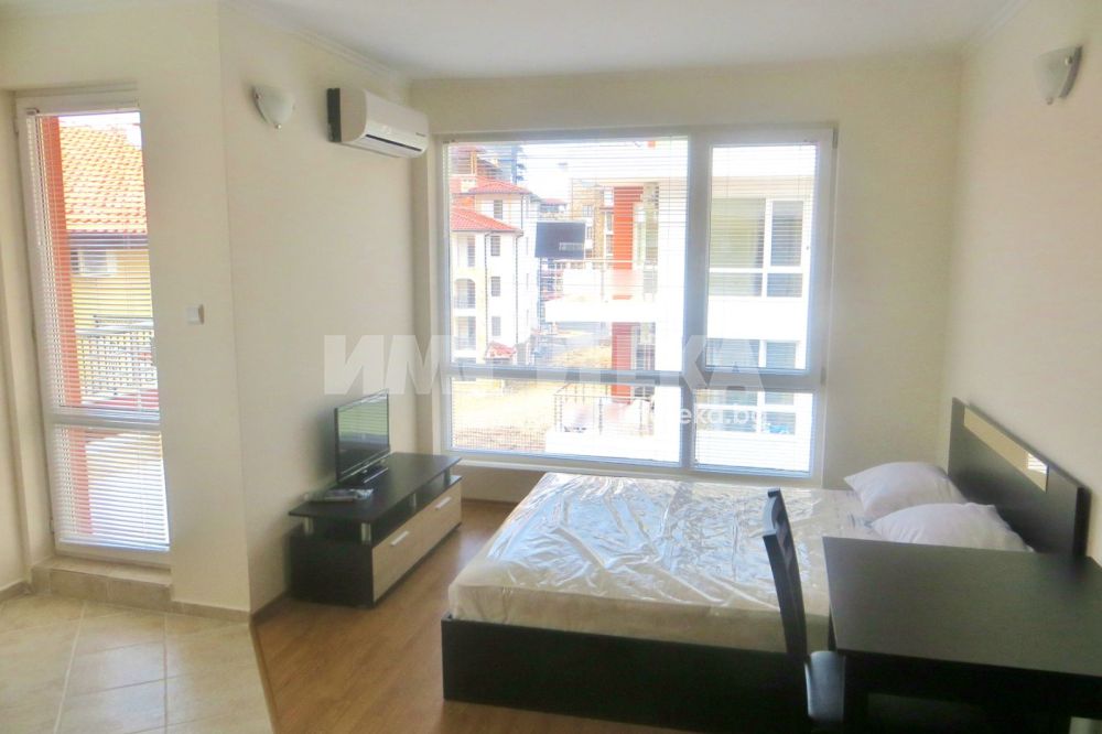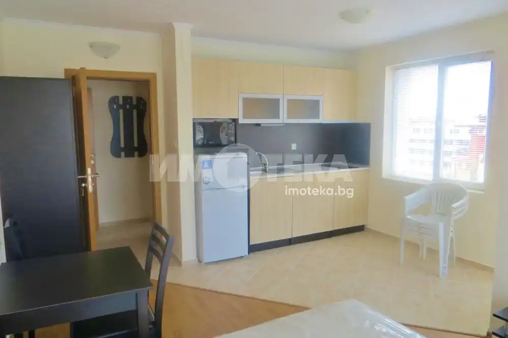 Едностаен апартамент /студио/ в гр. Несебър, Аурелия. Площ на имота 38 кв. м., етаж 3 от 5, асансьор. Състои се антре, дневна с кухненски бокс и кът за спане с тераса, баня с тоалетна. Кухнята е оборудвана с котлони, аспиратор, хладилник, микровълнова с грил, пералня. Охлаждане и отопление с климатик. Мебелировката включва двойно легло-спалня, разтегателен фотьойл, маса със столове в стаята и на терасата, гардероб. Минимална такса за поддръжка от 4 евро. Апартамента е на около 5 минути пеша от плаж Олимпийски надежди. Района е добре развит с много магазини и ресторанти.