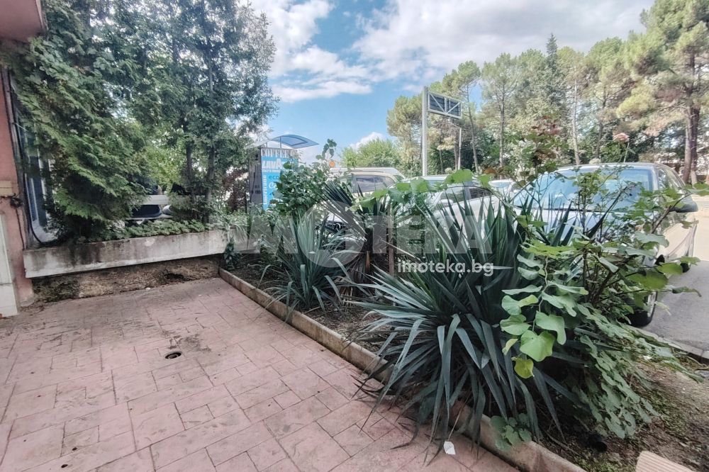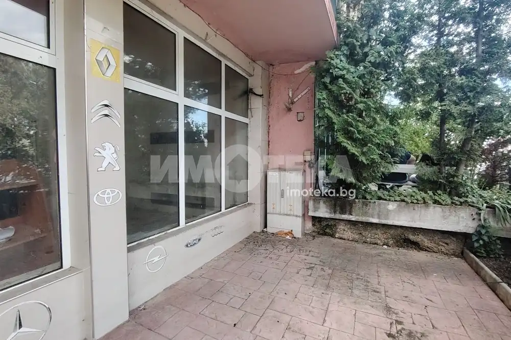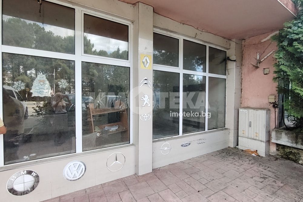 Помещението е с площ от 43 кв.м. на партерно ниво и ,се състои от голяма зала /шоурум/, санитарно помещение, склад и просторна площ пред магазина, която може да се използва за разполагане на витрини, за търговска дейност или като открита зона за клиенти.