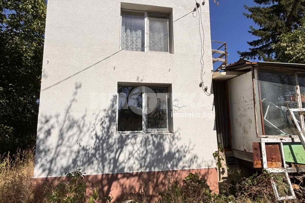 Масивна двуетажна къща, изградена от тухла и плочи, със застроена площ 47 кв.м. и разгъната застроена площ 100 кв.м., предлагаща удобна планировка и потенциал за обновяване според Вашия вкус.