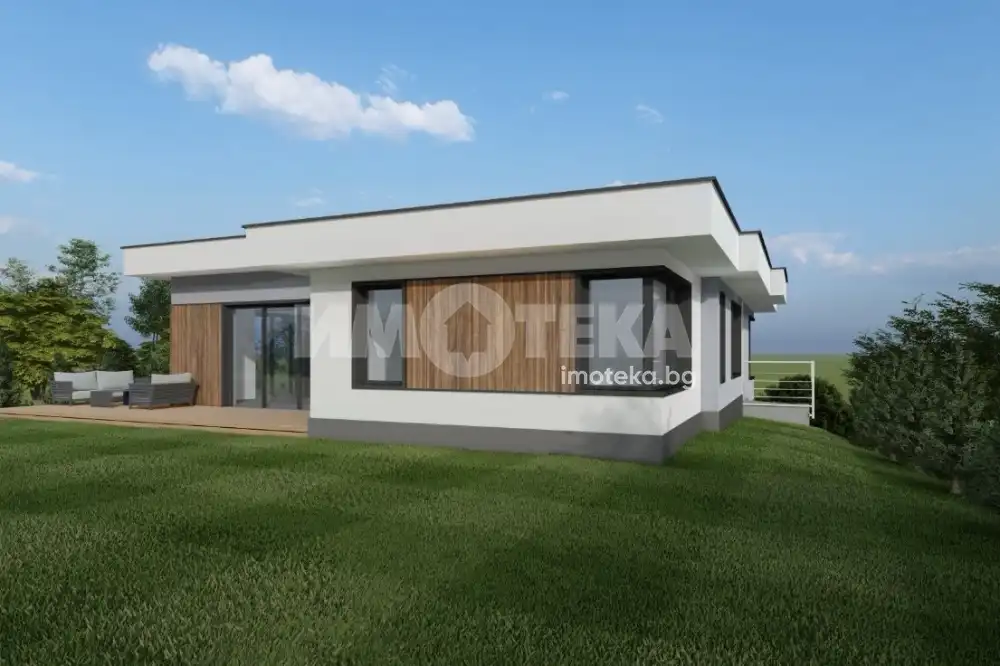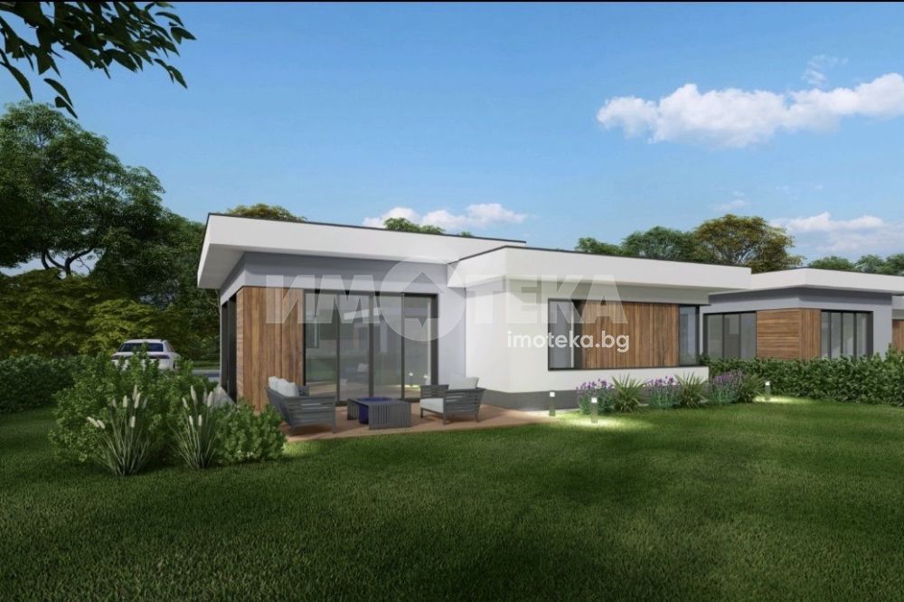Предлагаме едноетажна къща с две спални, част от малък жилищен комплекс от 9 къщи, разположен в с. Първенец - тихо и предпочитано място за живеене, с бърз достъп до гр. Пловдив. Къщата е с функционално разпределение на едно ниво и включва просторна дневна с кухненски бокс и трапезария, две спални, два санитарни възела (баня с тоалетна), веранда с излаз към самостоятелен двор. Имотът ще бъде издаден на шпакловка и замазка, със заложено подово отопление и изградени изходи за конвектори за охлаждане, осигуряващи комфорт през всички сезони. Отоплението и охлаждането са решени чрез термопомпа със сонда - модерно и енергийно ефективно решение. Всяка къща разполага със индивидуална септична яма. Комплексът предлага възможност за избор на разпределение - с две или три спални, както иперсонализация според желанията на клиента. Имотите са в етап на строеж, като Акт 16 се очаква до края на годината. Идеален избор за хора, търсещи качествено ново строителство, спокойствие и комфорт в близост до Пловдив