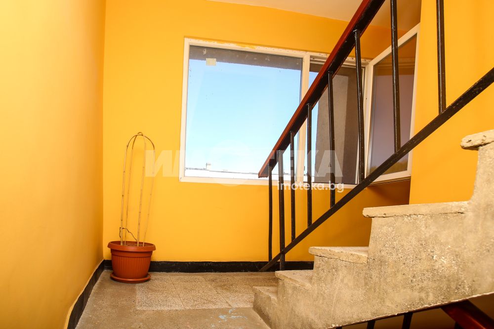 Санирана, панелна сграда от 1995 година. С добре подържани общи части и околоблоково пространство.
