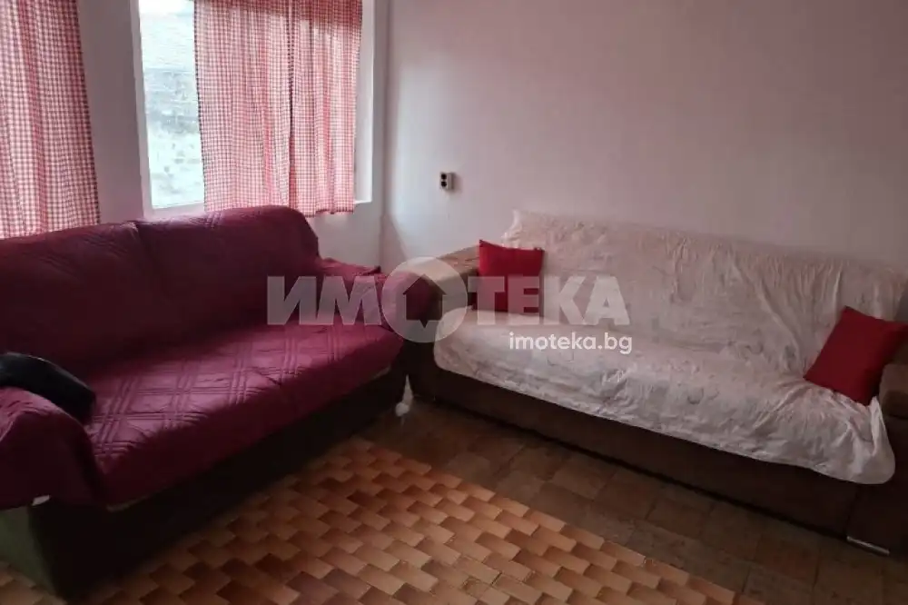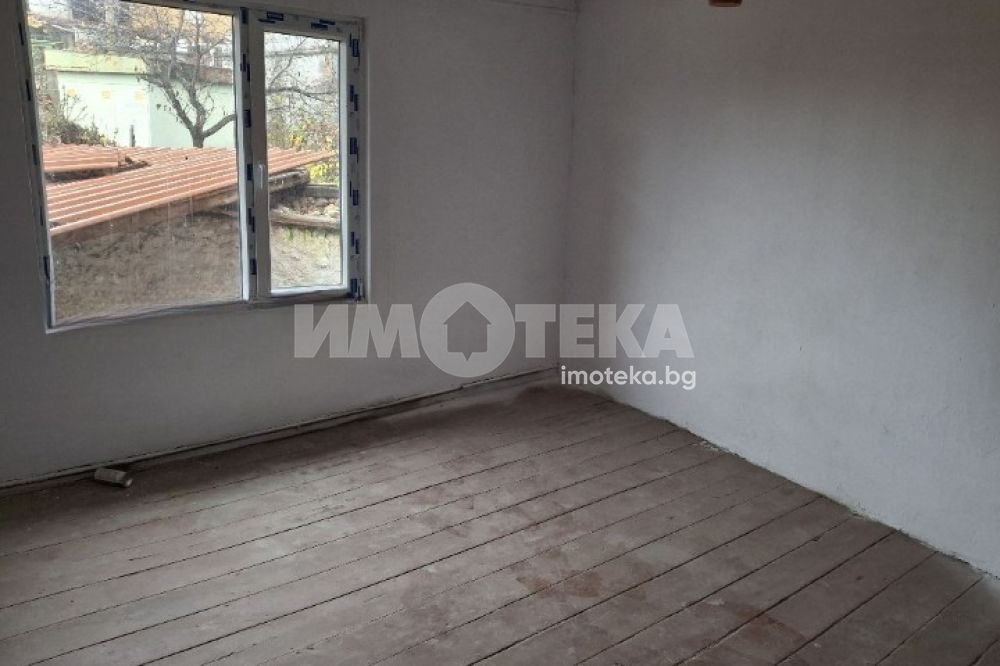 Площ на къщата 185 кв.м., на 2 етажа, без избата. Разпределение: Изба около 80 кв.м. 1 етаж- 3 стаи, баня с тоалетна, предверие, голяма тераса, голям килер, който също може да стане стая. 2 етаж- 4 големи стаи. Двор 208 кв.м, има навес 70 кв.м, лятна кухня 26 кв.м, работилница 17 кв.м и външна тоалетна. В момента е сменена дограмата с ПВЦ, шпакловка, боядисване на стаите вътре. Предстои саниране.. Съседният двор също се продава. Ток, вода, канализация.