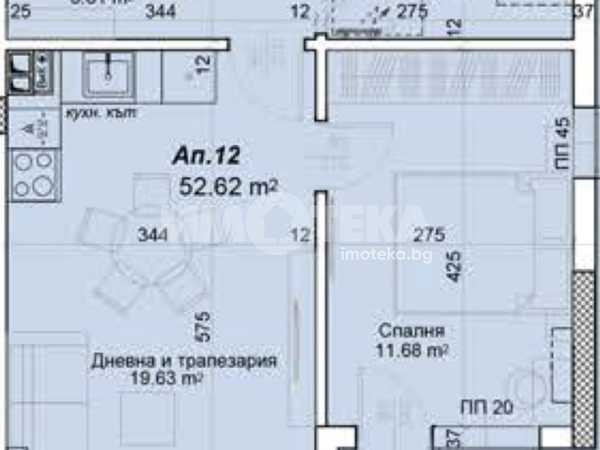 Представяме на вниманието Ви двустаен апартамент, ситуиран на първи жилищен / над партерен / етаж. Жилището разполага с просторно входно антре, складово помещение, хол с кухненска част, спалня, санитарен възел и лоджия!