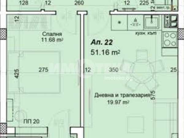 Представяме на вниманието Ви двустаен апартамент, ситуиран на втори жилищен етаж. Жилището разполага с просторно входно антре, складово помещение, хол с кухненска част, спалня, санитарен възел и лоджия!
