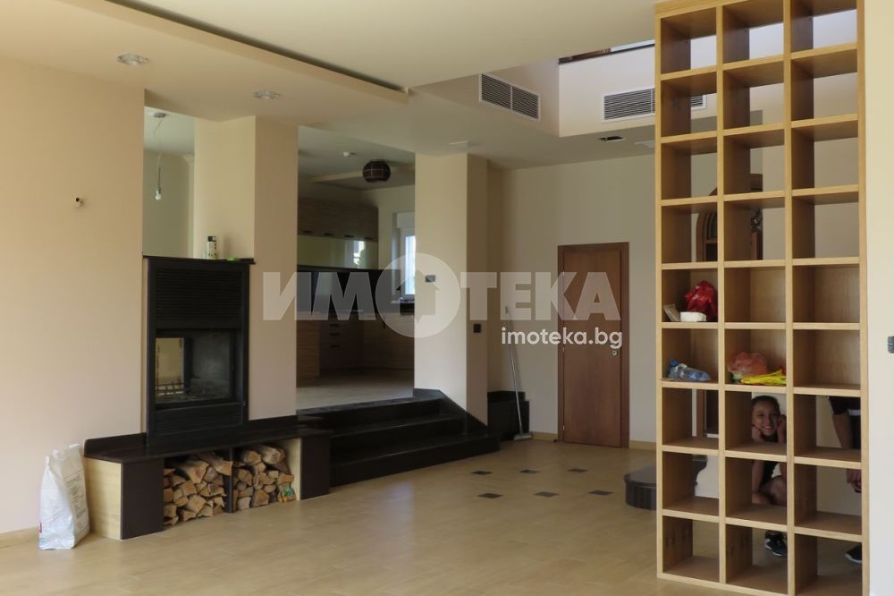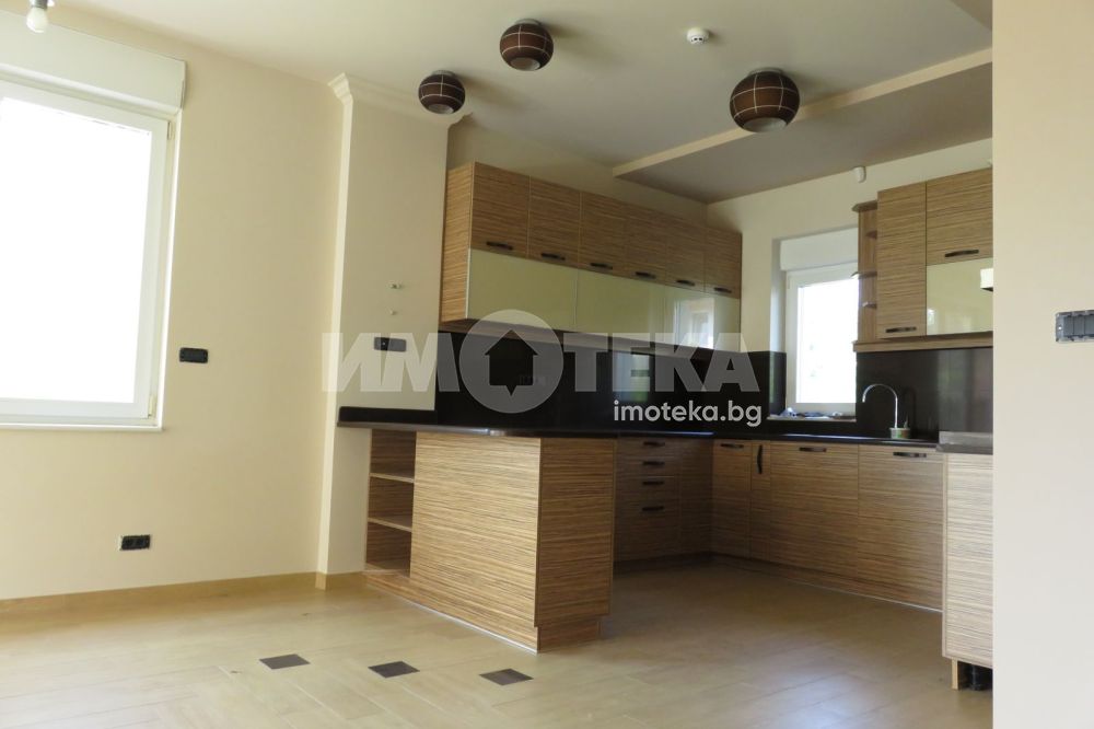 ПЪРВИ ЕТАЖ: Дневна: 43.8кв.м., ( open plane с трапезарията и кухнята ) Трапезария: 14.06кв.м, Кухня: 10.17кв.м, WC-първи етаж: 2,32кв.м, Кабинет: 14.99кв.м. , Килер: 2.25кв.м, Веранда: 17.69кв.м