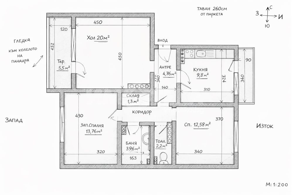 Просторен тристаен апартамент с 4 отделни стаи. Този функционално разпределен апартамент впечатлява с възможността за преустройство на многостаен. Състоящ се от хол, кухня, две спални, баня, тоалетна, две тераси, които са остъклени.Големите прозорци пропускат достатъчно естествена светлина, а разпределението позволява всяка зона да бъде използвана максимално ефективно.