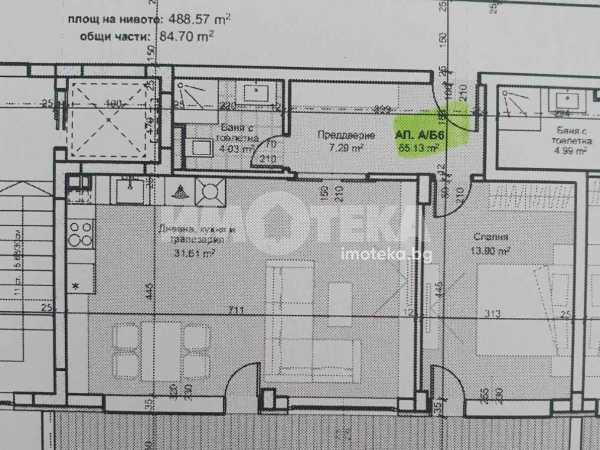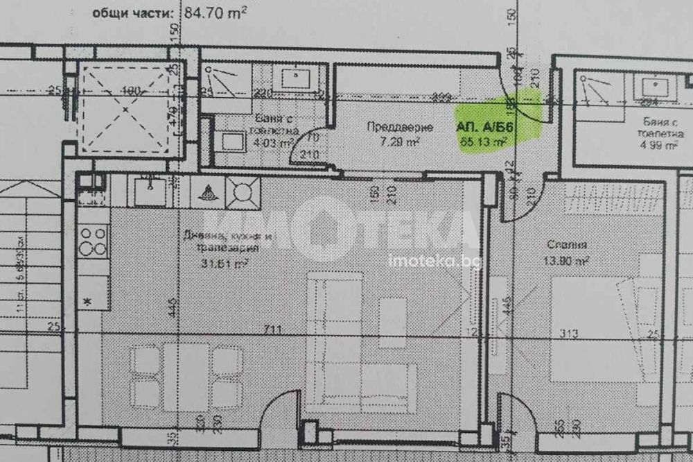 РАЗПРЕДЕЛЕНИЕ: коридор, просторна всекидневна с кухненски бокс, голяма светла спалня, баня с тоалетна и веранда
