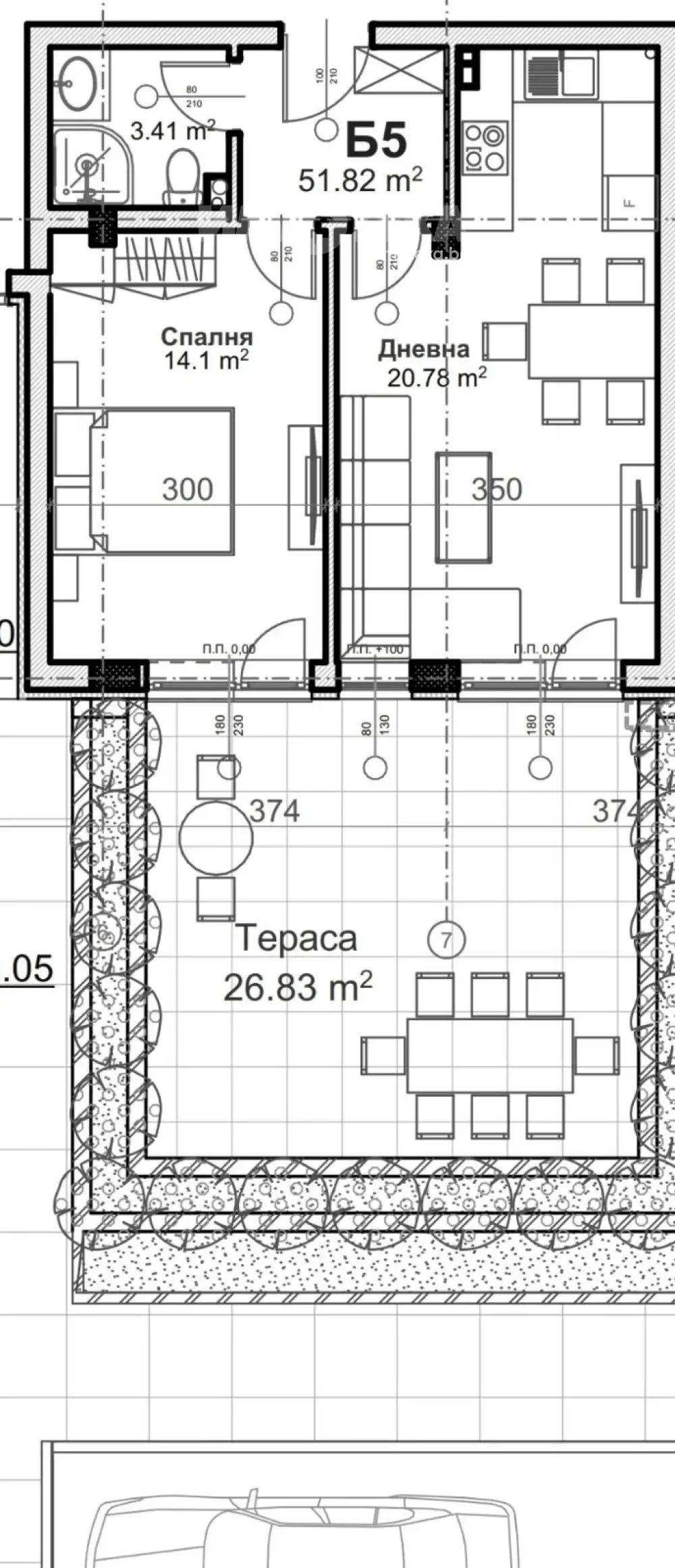 Представяме Ви двустаен апартамент, находящ се на един от най-предпочитаните райони, а именно Гребната база! Състои се от всекидневна с кухненски бокс, просторна спалня, санитарен възел и двор с площ от 27 кв.м. Има опция за закупуване на два подземни гаража на стойност 40 000 евро. Сградата е в строеж. Акт 14 се очква края на юни месец 2026 г.