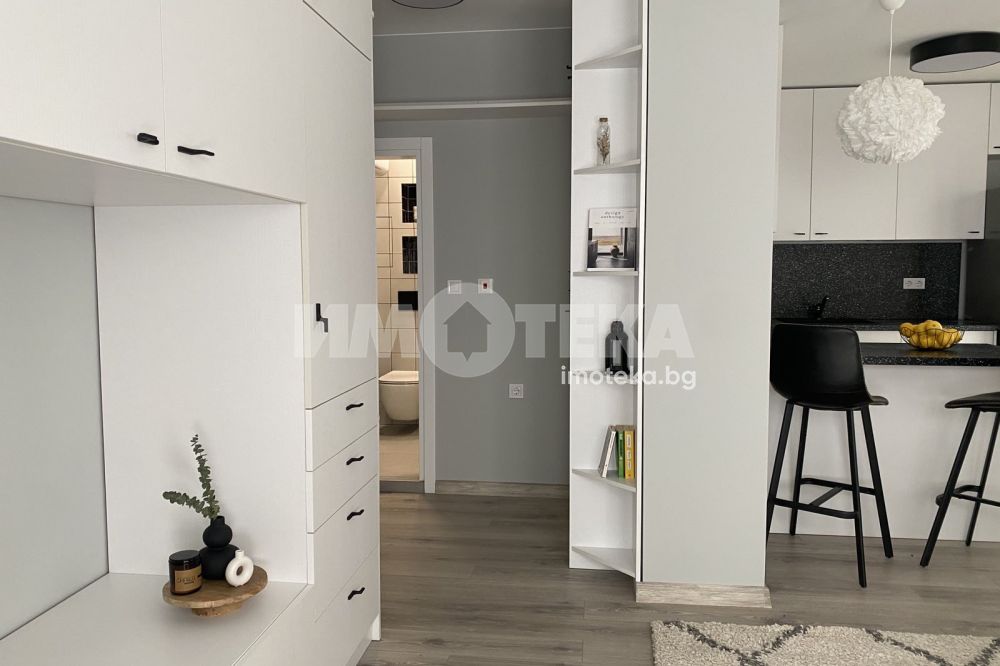 Предлагаме напълно обзаведен по индивидуален проект с висок клас мебели и електроуреди апартамент, готов за живеене или за инвестиция. Апъртаментът се състои от дневна, кухненски бокс, баня- тоалетна, веранда и тревна площ към верандата с площ от 64 кв.м. общо. Към жилището има изба с размер от 3.29 кв.м.