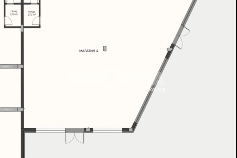 Прилежащ двор към магазина 123 м2. Има възможност за закупуване на паркоместа.