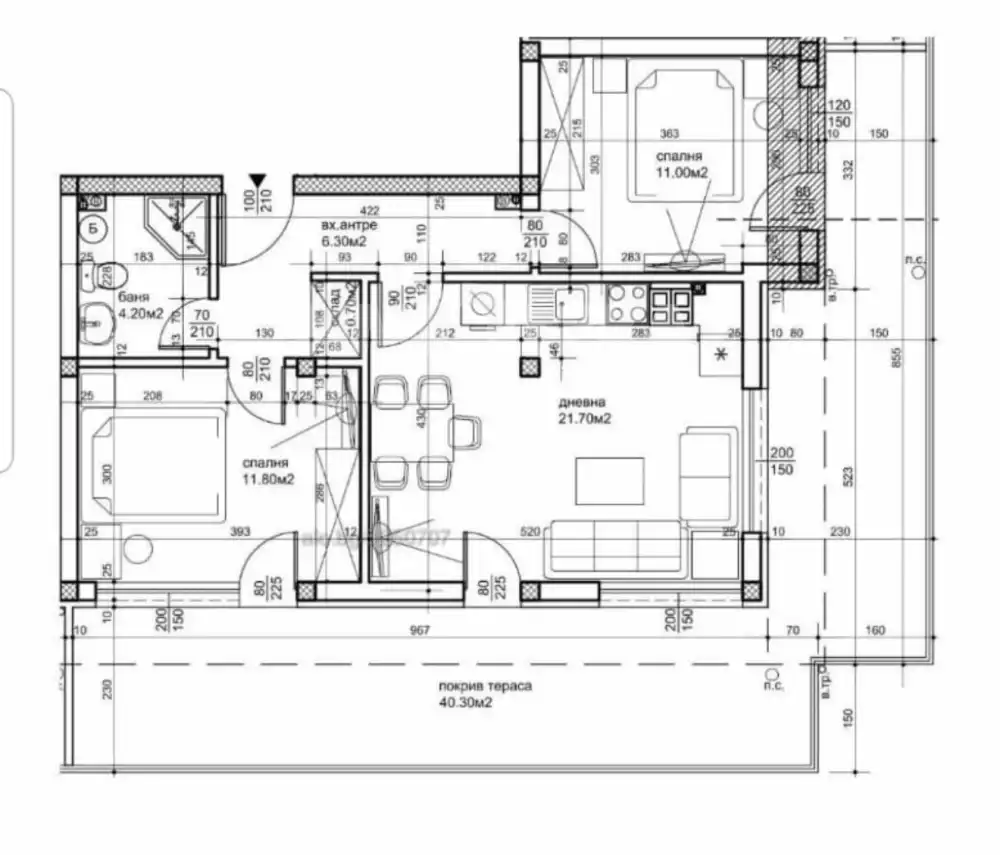 По документи , жилището е 106 кв.м и 11.90 кв.м общи части.