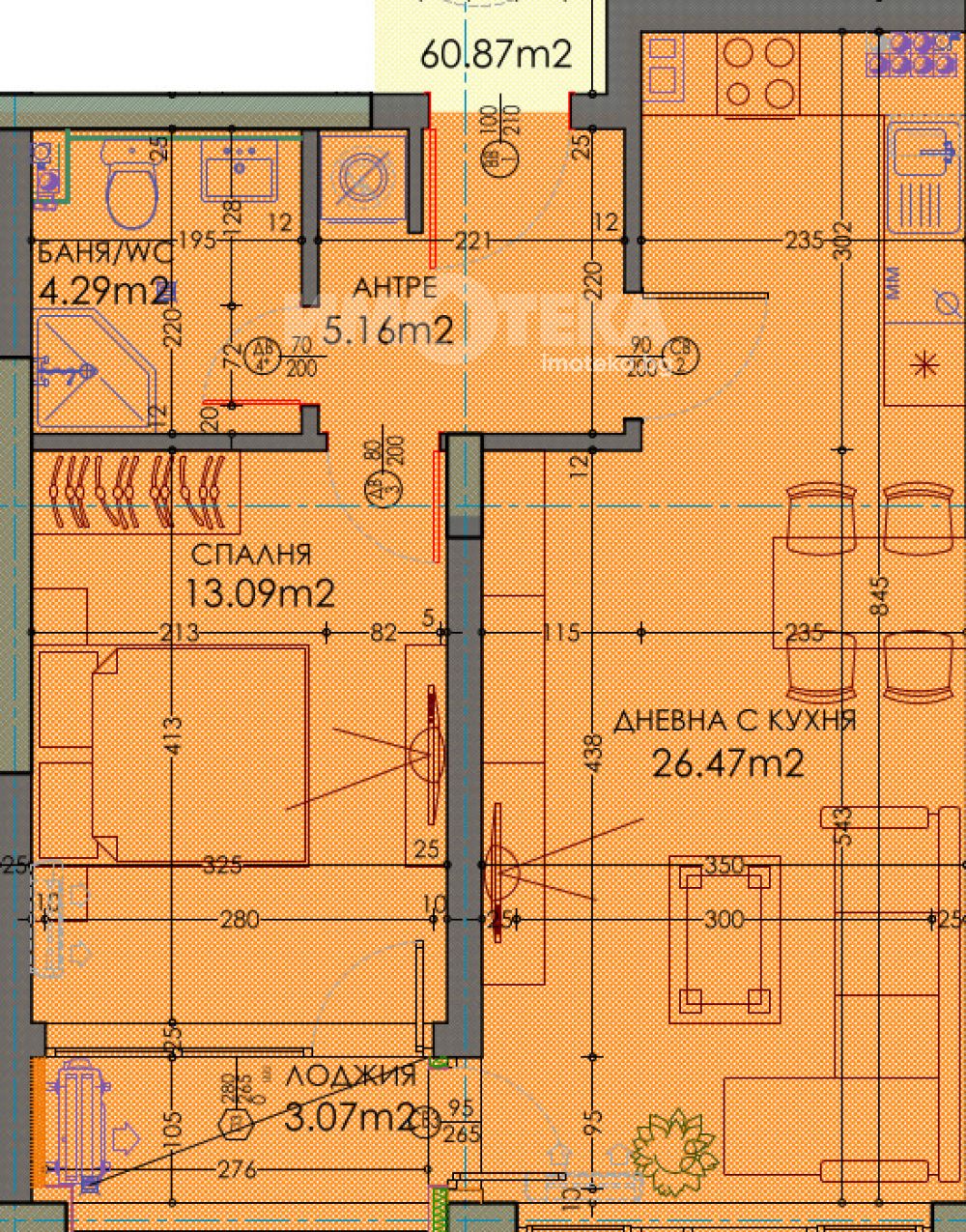 • Всекидневна с кухненски бокс