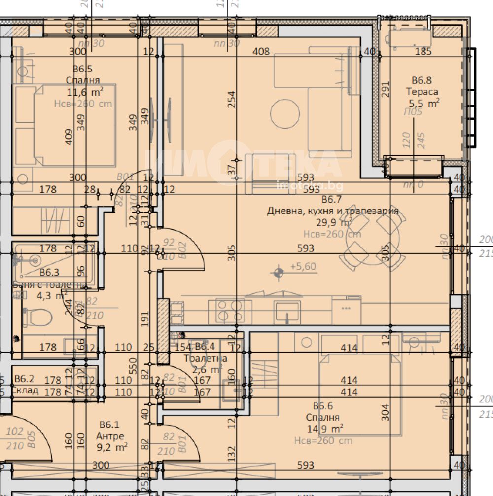 Пространството е оформено с усещане за стил и вкус, съчетаващо функционалност и спокойна естетика.