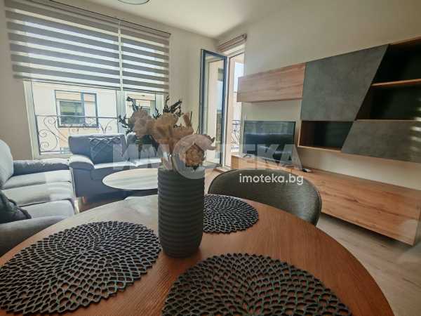 Предлагаме на Вашето внимание чудесен двустаен апартамент, състоящ се от коридор, една спалня, хол, кухня с трапезария оборудвана с всички необходими елекртроуреди, баня, отделна тоалетна и голяма тераса с излаз от всички стаи към нея. Подови настилки - паркет и теракот. Чиста жилищна площ 69кв.м. Жилището разполага с ТЕЦ и топла вода, но също така с два климатика и бойлер.
