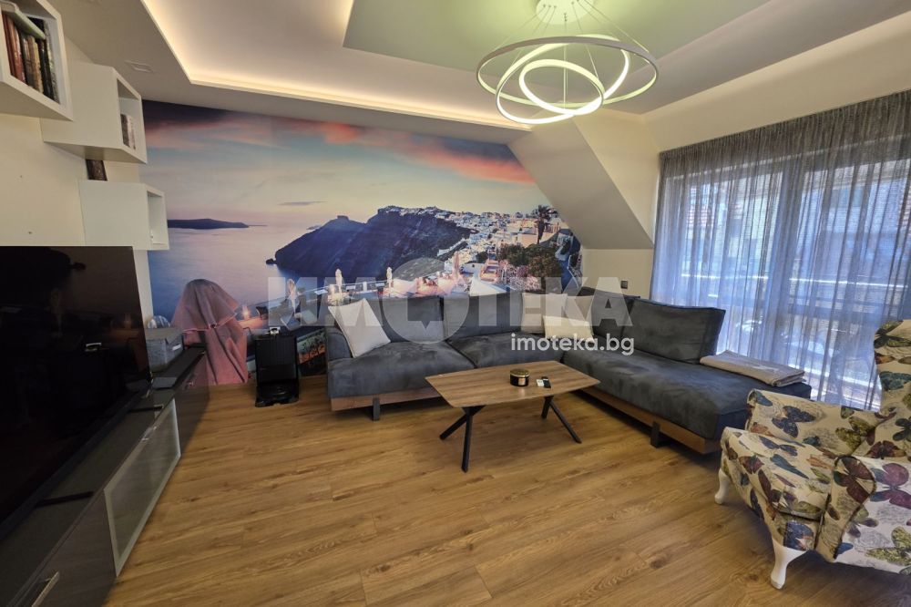 Жилището се предлага напълно обзаведено и оборудвано с висок клас електроуреди, климатици и телевизори. Разполага с подово отопление във всички помещения и система за пречистване на питейната вода.