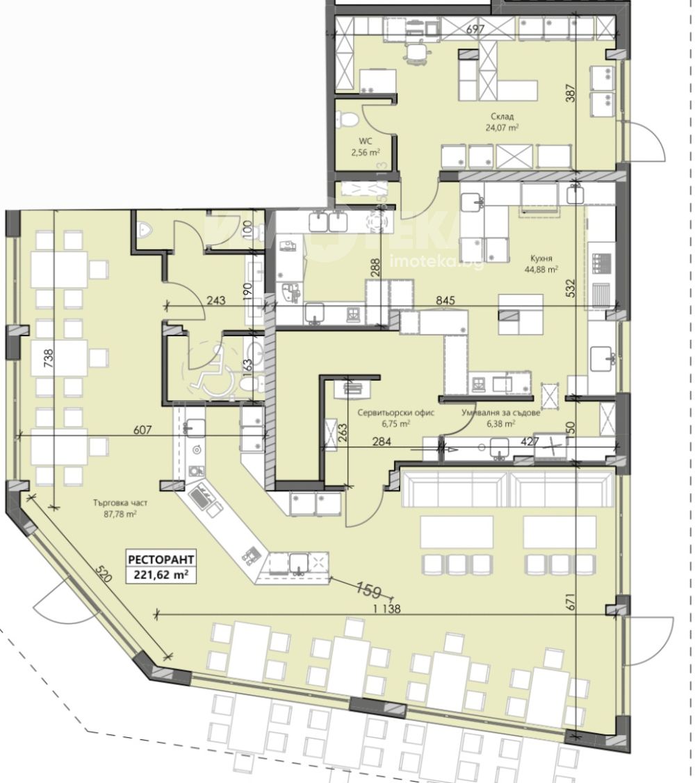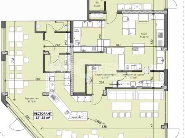 Кафе-ресторант с площ от 336 кв.м. + 209 кв.м. дворно място.